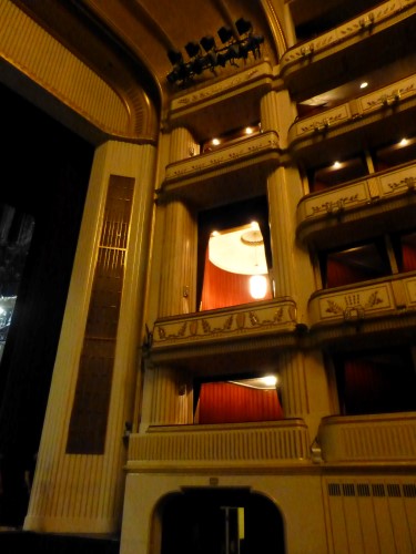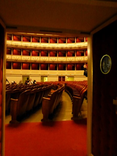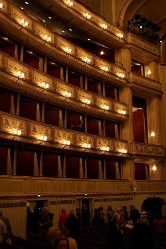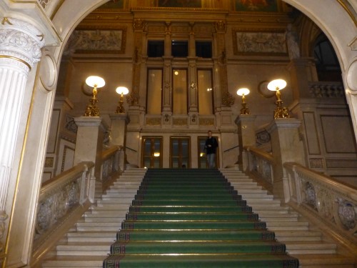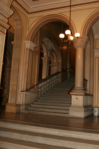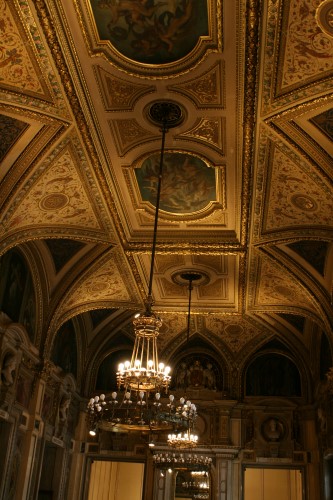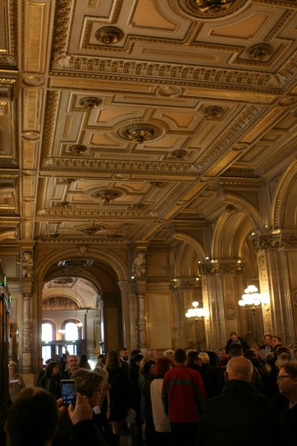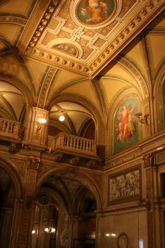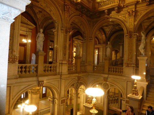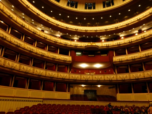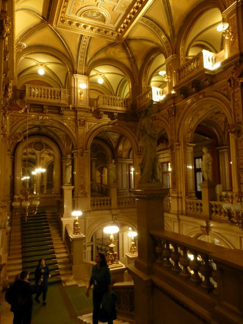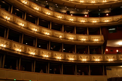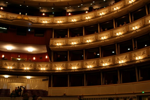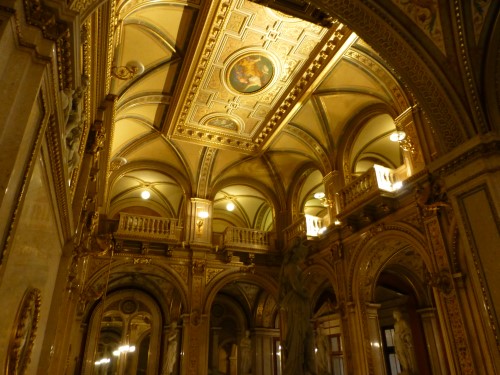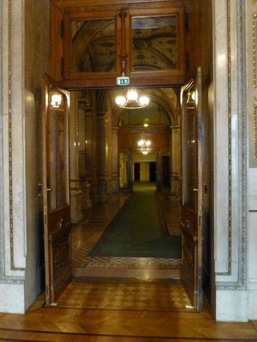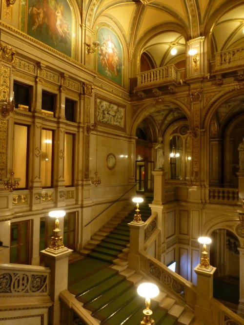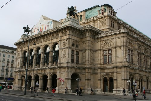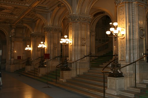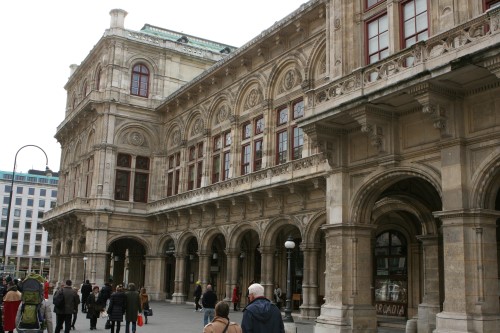 The building was, however, not very popular with the public. On the one hand, it did not seem as grand as the Heinrichshof, a private residence which was destroyed in World War II (and replaced in 1955 by the Opernringhof). Moreover because the level of Ringstraße was raised by a metre in front of the opera house after its construction had begun, the latter was likened to “a sunken treasure chest” and, in analogy to the military disaster of 1866 (the Battle of Königgrätz), was deprecatingly referred to as “the ‘Königgrätz’ of architecture”. Eduard van der Nüll committed suicide, and barely ten weeks later Sicardsburg died from tuberculosis so neither architect saw the completion of the building. The opening premiere was Don Giovanni, by Mozart, on 25-05-1869. Emperor Franz Josef and Empress Elisabeth (Sissi) were present.