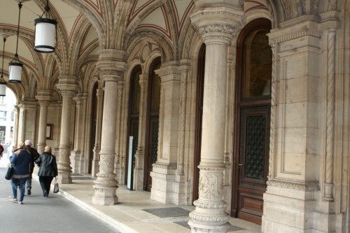 The Ministry of the Interior had commissioned a number of reports into the availability of certain building materials, with the result that stones long not seen in Vienna were used, such as Wöllersdorfer Stein, for plinths and free-standing, simply-divided buttresses, the famously hard stone from Kaisersteinbruch, whose colour was more appropriate than that of Kelheimerstein, for more lushly decorated parts. The somewhat coarser-grained Kelheimerstein (also known as Solnhof Plattenstein) was intended as the main stone to be used in the building of the opera house, but the necessary quantity was not deliverable. Breitenbrunner stone was suggested as a substitute for the Kelheimer stone, and stone from Jois was used as a cheaper alternative to the Kaiserstein. The staircases were constructed from polished Kaiserstein, while most of the rest of the interior was decorated with varieties of marble.