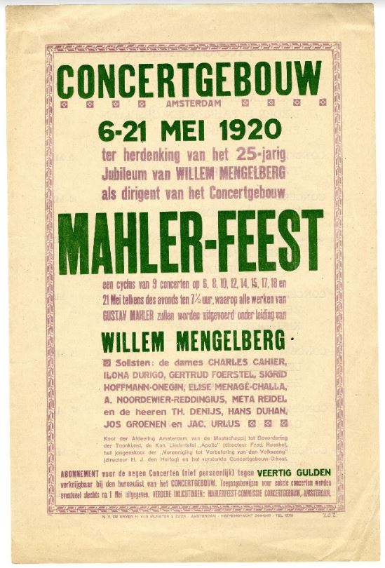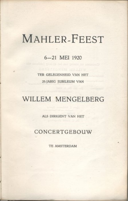 First Mahler Festival in Amsterdam. On the occasion of the 25th anniversary of Willem Mengelberg (1871-1951) at the Amsterdam Royal Concertgebouw Orchestra (RCO).