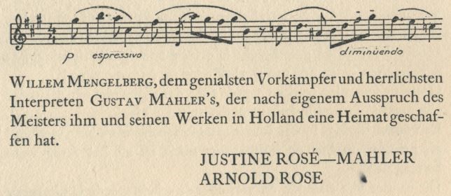 “On the day we jubilate Willem Mengelberg, a ray of the sun from the festival will illuminate a grave on the edge of Vienna and a glowing simple tombstone will send its greetings back to Holland: A greeting of Gustav Mahler to his heirs” – Vienna, 1919 – Gertrude Forstel (1880-1950)