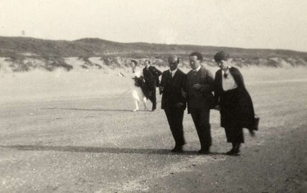 1920. Zandvoort. Gustav Mahler Festival Amsterdam 1920. Mathilde Schoenberg and Richard Specht (1870-1932). Arnold Schoenberg (1874-1951), Willem Mengelberg (1871-1951) and Mathilde Mengelberg-Wubbe (1875-1943).