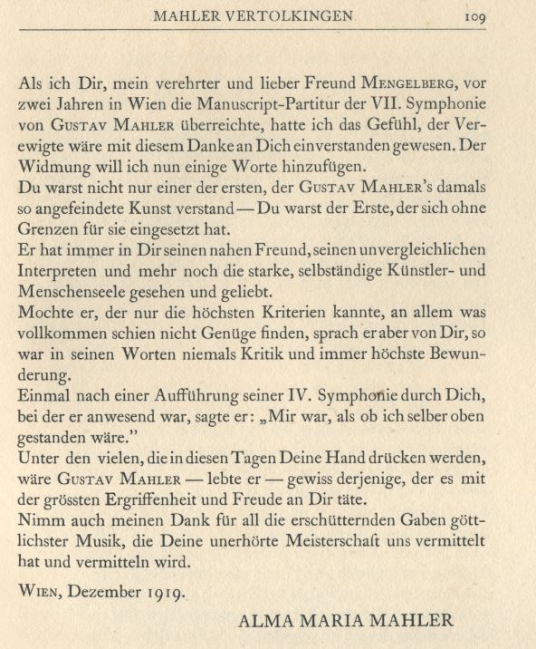 For us Viennese, this was not only an enormous gain artistically, but also a display of great humanity. One was again surrounded by friendship and love. The generosity of our hosts was such that we could again believe in the words [of Schiller, set by Beethoven in his 9th Symphony] ‘Alle Menschen werden Brüder, wo dein sanfter Flügel weilt.’ The shared goal of something artistic brought us out of, and beyond ourselves and created an atmosphere of artistic and profound seriousness. That this could happen, we are indebted to the man who is Mengelberg and his circle of supporters and friends.