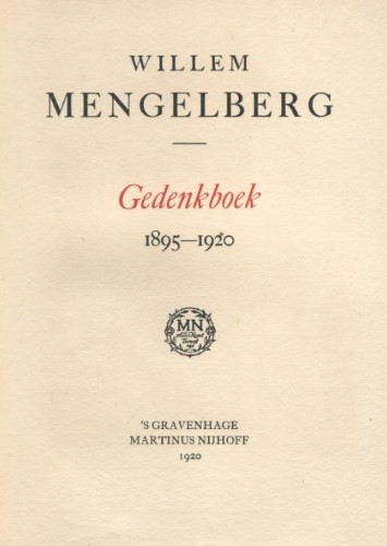 - 24-04-1920 Amsterdam: Amsterdam Royal Concertgebouw. Saturday. Honoring day. Composition “Feast Cantata” by Cornelis Dopper (1870-1939). Prince Hendrik on the stage. Mathilde Mengelberg-Wubbe (1875-1943). Triumphal arch. Composition “Welkomsgroet” by Catharina van Rennes. Composition “Mengelbergcantata” by Cornelis Dopper (1870-1939). Many speeches. Handing over the Commemorative book by Paul Cronheim. Seven enormous books with many personal contributions are bound by C. J. Mensing in Bussum in levantine morocco (a fine kind of goat leather from Morocco). On the back of 6 green books are the first 13 bars of Mahler’s Symphony no. 3 as characteristic of the person Mengelberg: “Kraftig und entschiedend”. Book 7 is brown and contains the contributions of the visual artists. On the back are golden stamps, which are cut into copper by Mensing. The seven books are stored and a nice cabinet, made by the NV Meubelfabriek v. H. Le Cointre and Co. from The Hague. A shorter (green) Trade edition has also been made. Ending of the evening with Halleluja from The Messiah (Georg Friedrich Handel (1685-1759)). Amsterdam Royal Concertgebouw Orchestra (RCO) and Toonkunst choir.