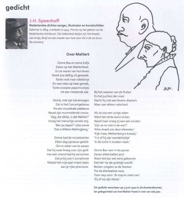 05-06-1920. Poem ‘Over-Mahlert’ by J.H. (Koos) Speenhoff (1869-1945) in ‘De Amsterdammer’ about the Mahler Festival 1920 Amsterdam.