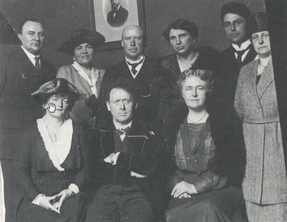 13-05-1920. Gustav Mahler Festival Amsterdam 1920. Sitting: Sigrid Onegin, Alexander Schmuller (1880-1933), Alma Mahler (1879-1964), Gerrit Hendrik de Marez Oyens (1811-1883), Sarah Charles Cahier (1870-1951), Leonid Kreutzer (1884-1953). Standing in the back: S.A.M. Bottenheim (left) and Joseph Groenen (middle). S.S. Pieterszoon Coen.