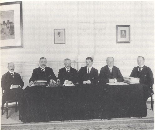 Het bestuur van Het Concertgebouw N.V. in 1913. v.l.n.r. J.Dudok van Heel, mr. H.J. van Ogtrop, mr R. van Rees , G.H,. de Marez Oyens, H. de Booij en de administrateur H.Feyer