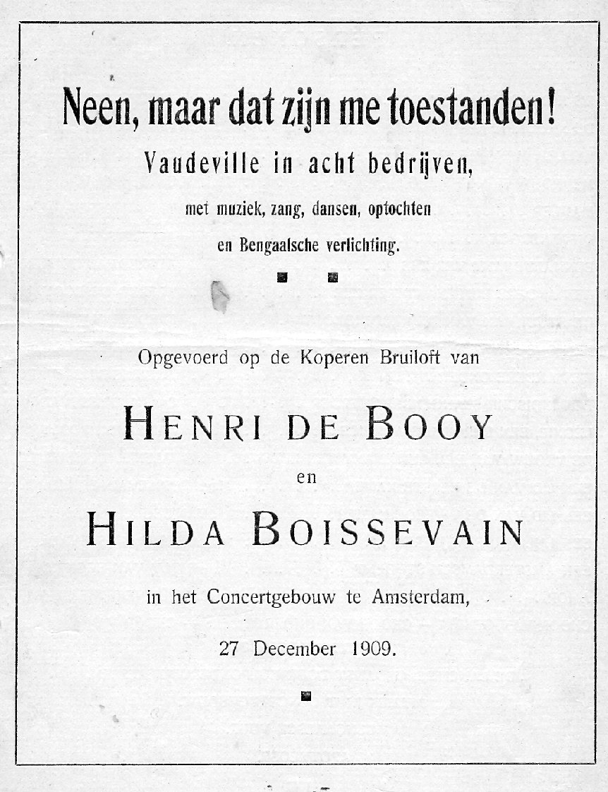 - Married: 16-06-1897 in Naarden. Married to Hilda Gerarda de Booy-Boissevain (1877-1975). Marriage party at House Boissevain Drafna, house of Charles Ernest Henri Boissevain (1868-1940) and Maria Barbera Boissevain-Pijnappel (1870-1950).