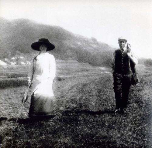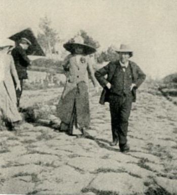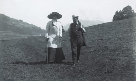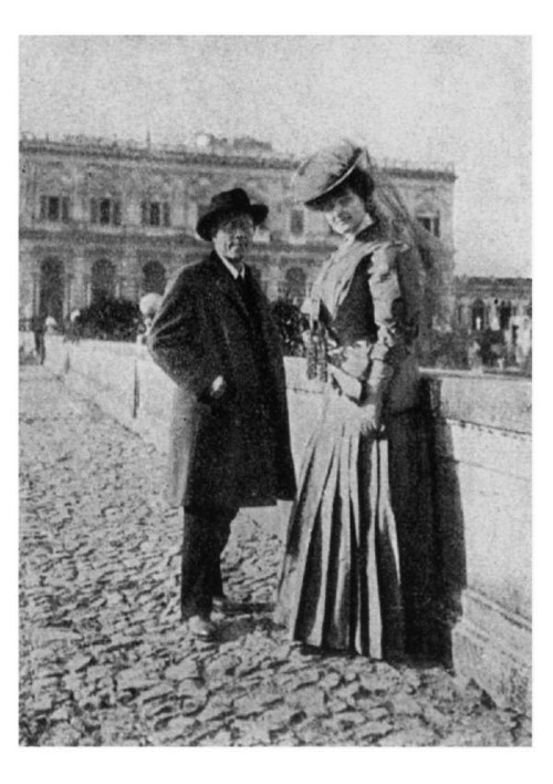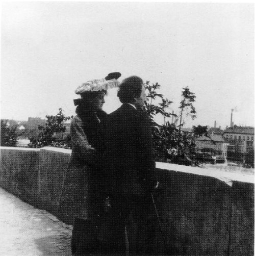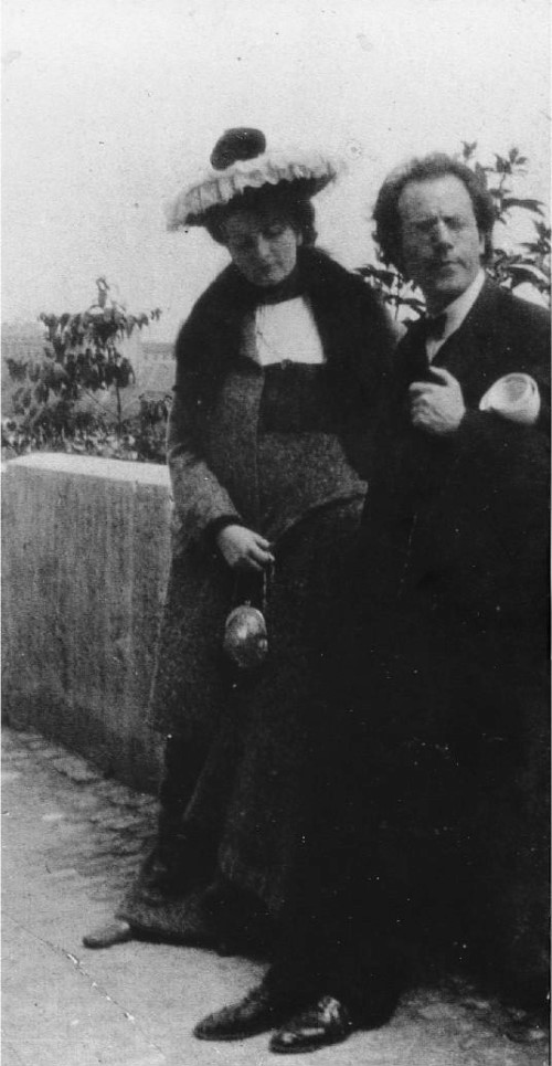 Year 1903. Basel. Alma Mahler (1879-1964) and Gustav Mahler (1860-1911). The first known photographs of Gustav Mahler and Alma Mahler together, taken one year after their marriage at the time when Mahler conducted a performance of Symphony No. 2 in the Basel Cathedral.