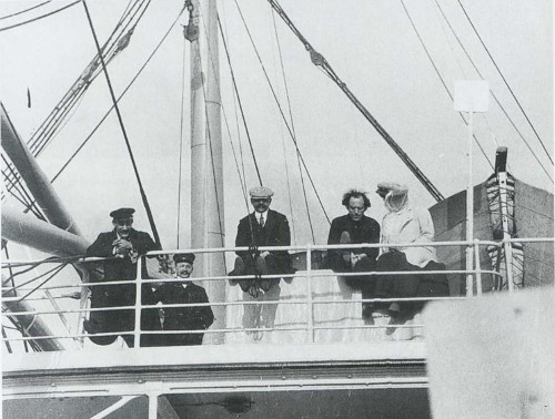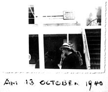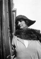 1940. New York, Hoboken. Alma Mahler (1879-1964). Arrival. Disembarking from the "Nea Hellas". Behind her (partly hidden) Nelly Mann, Heinrich Mann's wife.