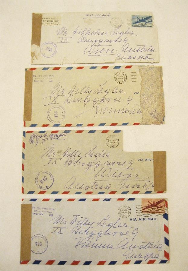 00-00-1945 After the end of the war, Alma learned that her stepfather, Carl Moll, and her half-sister and her brother-in-law, Maria and Richard Eberstaller, who had all been supporters of Nazi ideology, had died by their own initiative, in a murder-suicide pact, as Russian troops were entering Vienna. (Alma’s mother, Anna Moll, had died in 1938, after Alma’s flight from Vienna.) Alma began to correspond with her nephew Willi Legler (her sister Margarethe (Grete) Julie Legler-Schindler (1881-1942)’s son) in Vienna, who attended to a variety of matters on her behalf, including the taking of inventory at her two houses, the ordering of repairs, and the mediation of legal matters. Her House Alma Mahler Vienna Hohe Warte 1931-1945 (Steinfeldgasse No. 2, Villa Eduard Ast) had been extensively damaged by allied bombing during the war. At this time, it came to light that property rightfully belonging to Alma had been appropriated in various ways by her family. Most significantly, her cherished Munch painting, Sommernacht am Strand (the gift from Walter Gropius upon the birth of Manon), which she had given on loan to the Austrian Gallery (Österreichische Galerie, formerly called the Moderne Galerie) had been sold to the museum by her stepfather, at an unsuitably low price, ostensibly to pay for repairs to her House Alma Mahler Breitenstein am Semmering 1913-1937 (Werfelweg 6, Villa Mahler). Other property, including paintings by her father, Emil Jakob Schindler, had been bequeathed, through the will and testament of Richard and Maria Eberstaller, to Eberstaller’s heir, his brother Theodor.