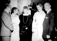 1944. Los Angeles. Alma Mahler (1879-1964) and Franz Werfel (1890-1945) on the film set of "Guest Wife" ("What every Woman wants") with movie director Sam Wood, Claudette Colbert and Don Ameche.