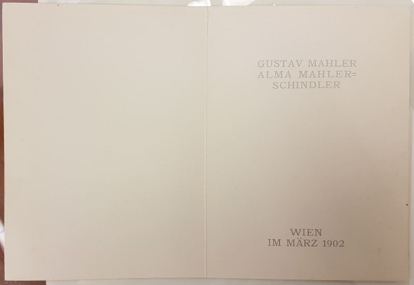Wedding card Gustav Mahler (1860-1911) and Alma Mahler (1879-1964).