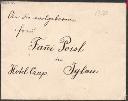 29-03-1880. Vienna. Letter by Gustav Mahler to Josephine Poisl (1860- after 1880) in Hotel Czap (Zizkova street Nos. 15/1696, Sct. Johann’s Platz No. 50/51).