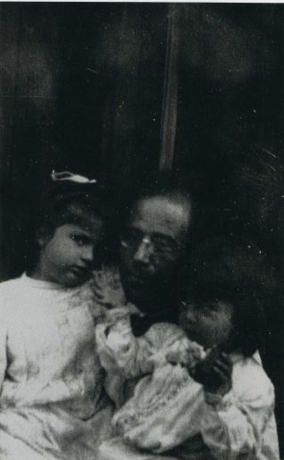 Year 1905. House Gustav Mahler Maiernigg 1901-1907 (Villa Mahler, Maiernigg No. 31). Maria Anna Mahler (Putzi) (1902-1907), Gustav Mahler (1860-1911) and Anna Justine Mahler (Gucki) (1904-1988).