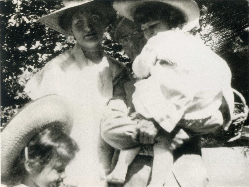 Year 1905. House Gustav Mahler Maiernigg 1901-1907 (Villa Mahler, Maiernigg No. 31). Maria Anna Mahler (Putzi) (1902-1907), Anna Justine Mahler (Gucki) (1904-1988), Alma Mahler (1879-1964) and Gustav Mahler (1860-1911).