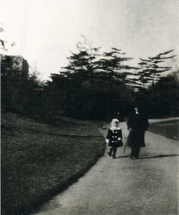 Year 1910. Anna Justine Mahler (Gucki) (1904-1988) and Gustav Mahler (1860-1911). New York, Central Park.