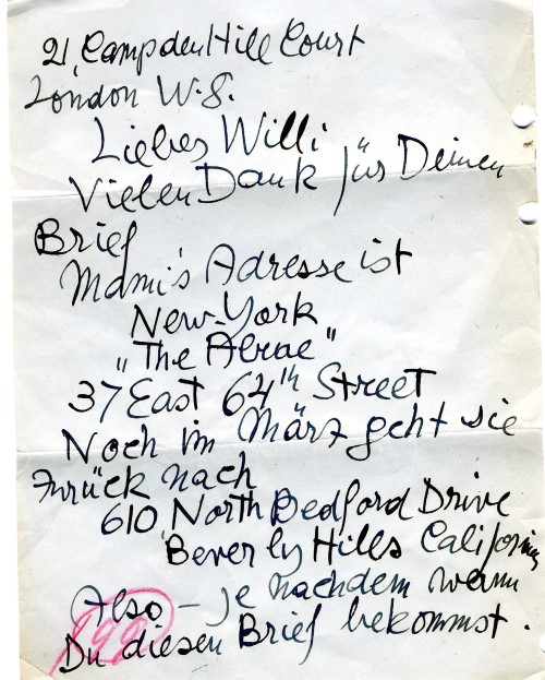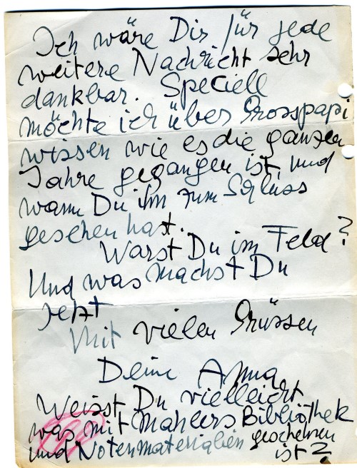 1946. Letter from Anna Justine Mahler (Gucki) (1904-1988) to Willi Legler (son of Margarethe (Grete) Julie Legler-Schindler (1881-1942)).