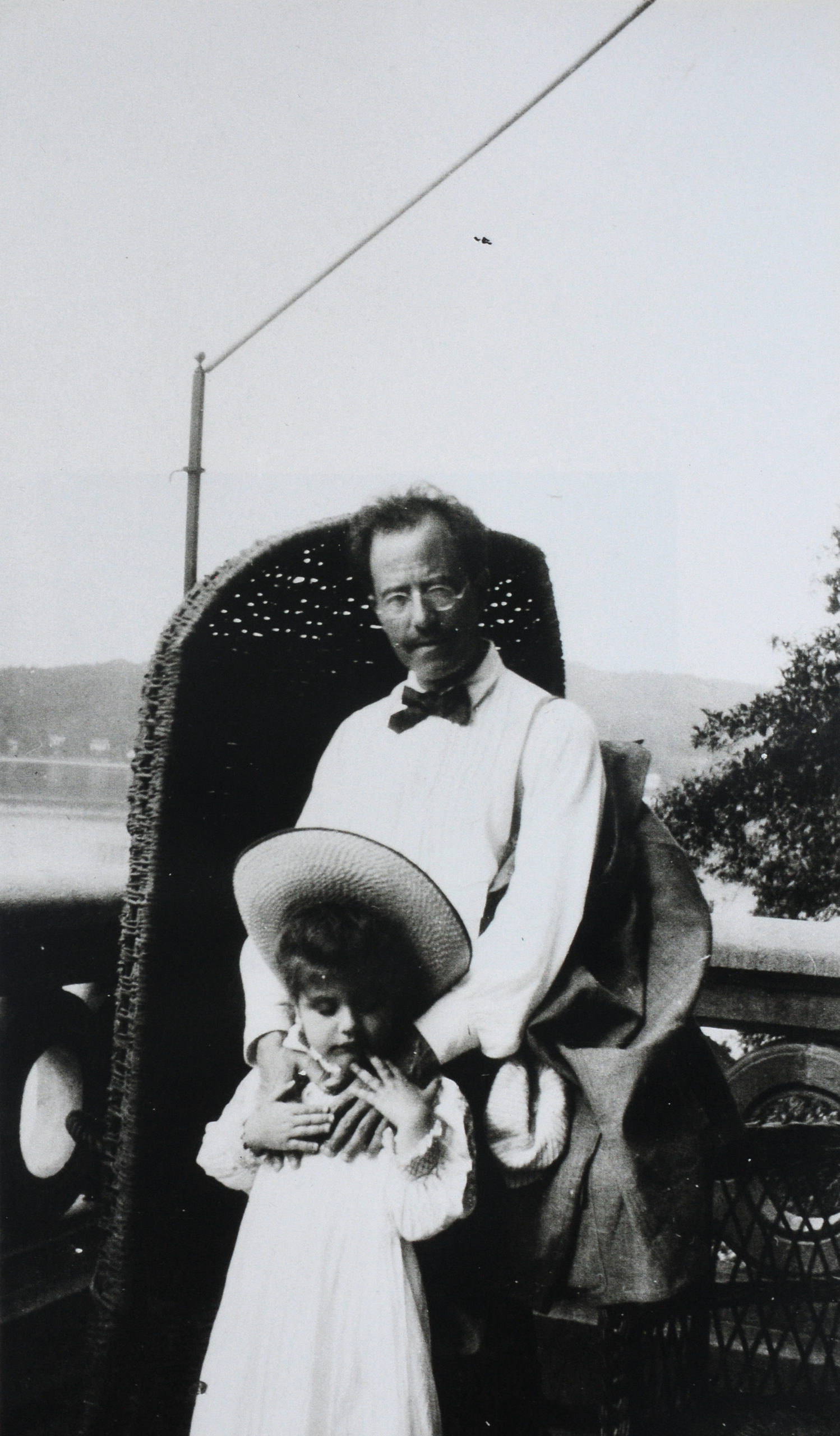 58. 1905. House Gustav Mahler Maiernigg 1901-1907 (Villa Mahler, Maiernigg No. 31). Mahler with his three-year-old daughter Maria Anna Mahler (Putzi) (1902-1907) on the stone terrace of the lakeside Villa Mahler he built on the Wortersee in Austria. Maria would die tragically two years later from scarlet fever and diphtheria. That same year Mahler himself was diagnosed as having a heart ailment.