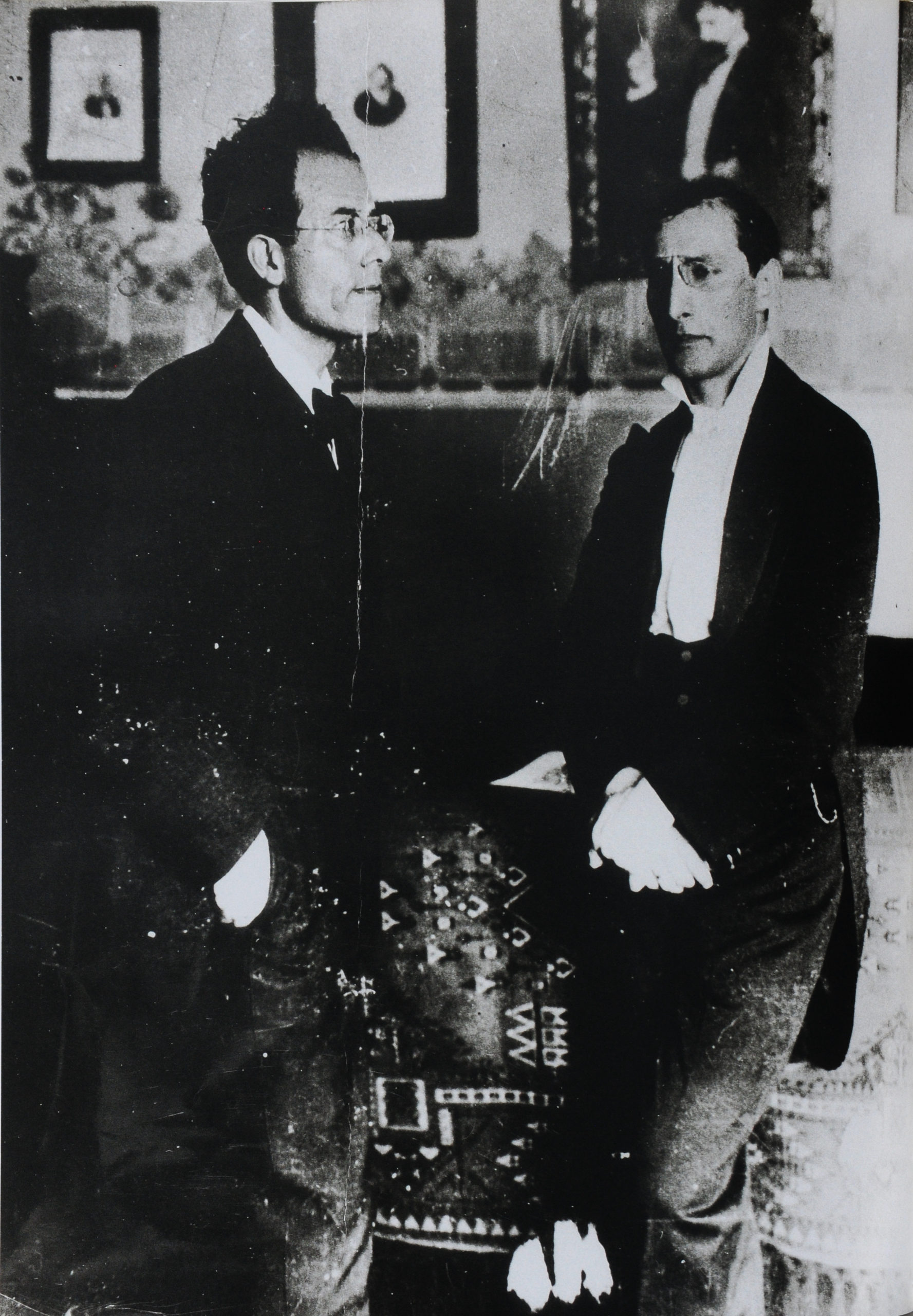 68. 1905. Berlin. Mahler with conductor Oskar Fried (1871-1941), who led a performance of Mahlers Symphony No. 2 on 08-11-1905. Fried’s 1924 recording of Symphony No. 2 was the first of a Mahler symphony. On the day following Fried’s concert, Mahler went to Leipzig to “record” four of his compositions on rolls to be played on the Welte-Mignon automatic piano. These rolls are the only recordings of Mahler as a performer. The work included Symphony No. 4, Movement 4: Lied: Das himmlische Leben (Sehr behaglich), Symphony No. 5, Movement 1: Trauermarsch (Funeral March). In gemessenem Schritt. Streng. Wie ein Kondukt and the songs Lied 2: Ich ging mit Lust durch einen grunen Wald and Lied 2: Ging heut’ Morgen uber’s Feld. Earlier that summer Mahler completed his Symphony No. 7. Photo of Arthur Nikisch (1855-1922) in the back.