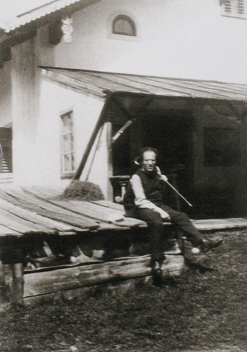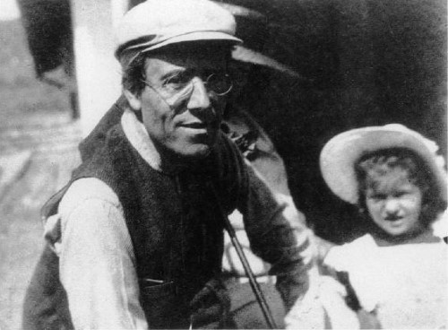 103. 1909. Toblach (now Dobbiaco, Italy). Mahler and his daughter Anna Justine Mahler (Gucki) (1904-1988) at the rear of their farmhouse. During this summer he completed Das Lied von der Erde and the orchestral sketches for his Symphony No. 9. However, Mahler would never hear these works performed. Their premieres, conducted by Bruno Walter (1876-1962) took place after Mahler’s death. Das Lied von der Erde on 20-11-1911 in Munich and Symphony No. 9 on 26-06-1912 in Vienna.