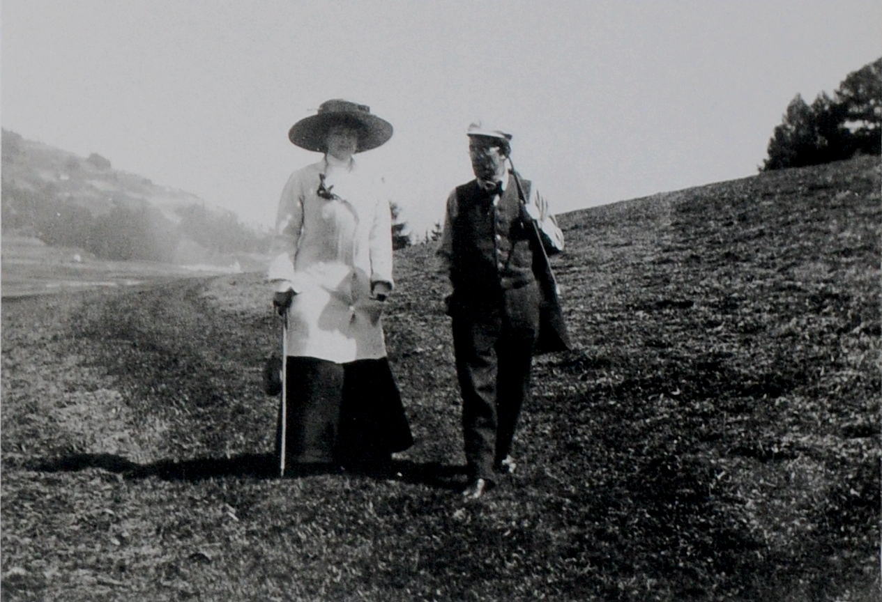 105. 1909. Toblach. Mahler and his wife Alma Mahler (1879-1964) stroll the hills near their summer home. Earlier in 06-1909 he sat for Auguste Rodin (1840-1917) who created the well-known bronze bust of Mahler.