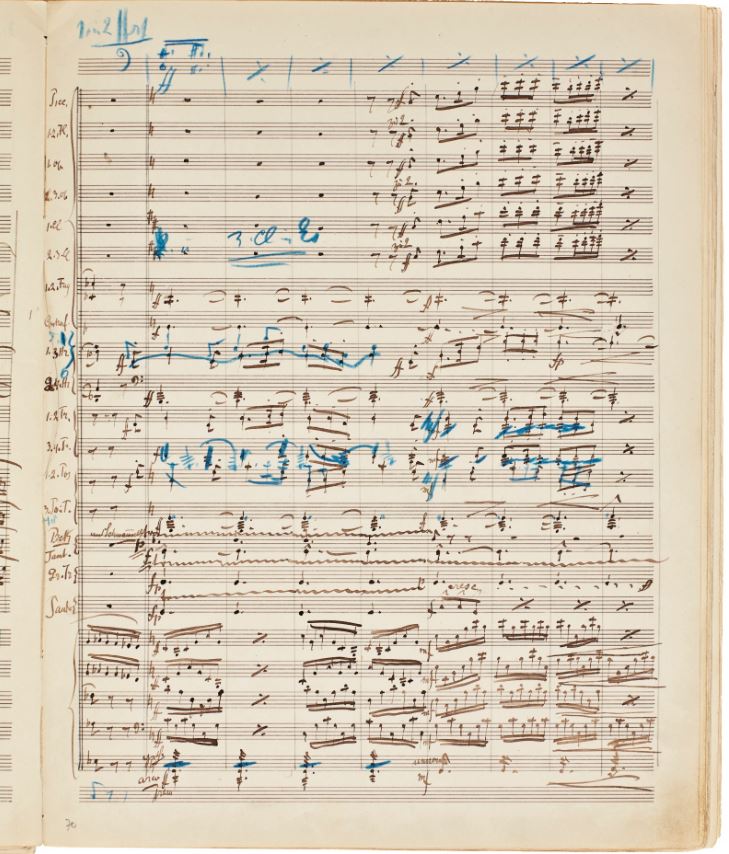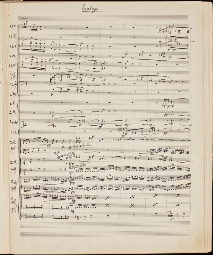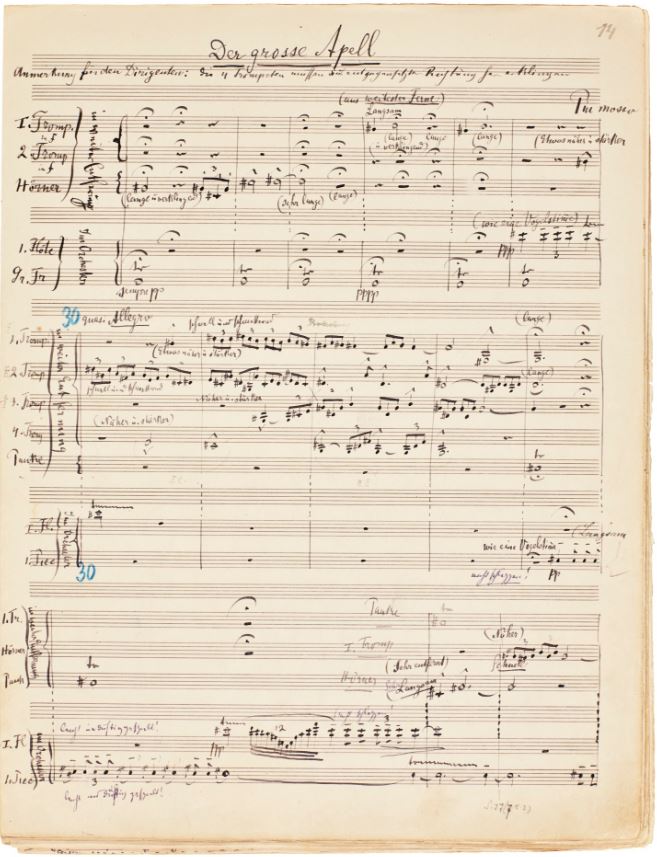 Beginning of Scherzo: “Dämpfer bereit legen!” (prepare mute!) End of 5th mvt: Performance duration: “71 Min”