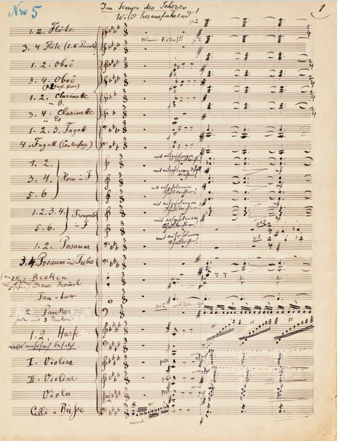 - “Im Tempo des Scherzos. Wild herausfahrend!”, comprising 21 unstitched bifolios, a total of 83 pages.