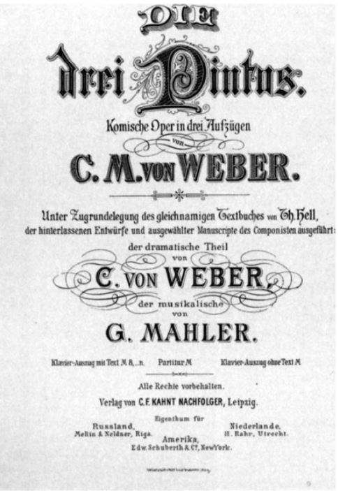 Die drei Pintos. Carl Maria von Weber (1786-1826) and Gustav Mahler (1860-1911), Kahnt music publishers.