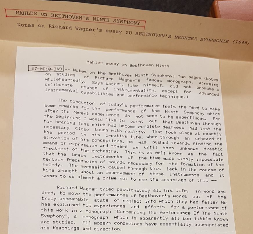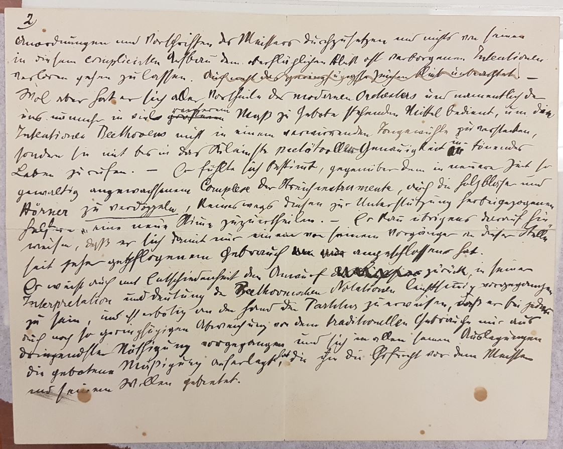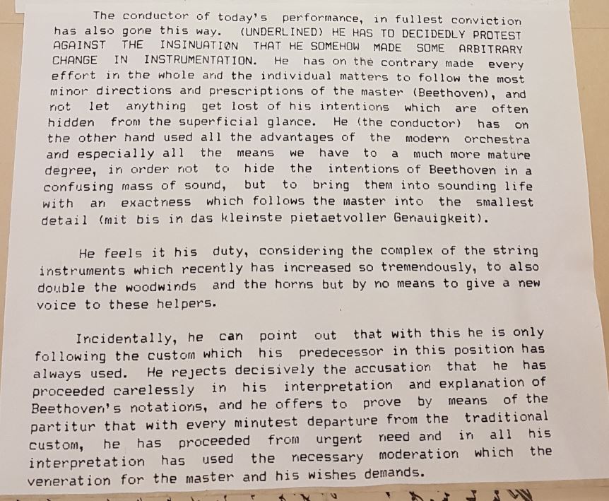 Transcription Beethoven Symphony No. 9, two-page draft of Mahler’s note justifying his Retouching to Beethoven’s Ninth Symphony. Written after the reviews of the first performance (18-02-1900) for distribution at the second (22-02-1900).