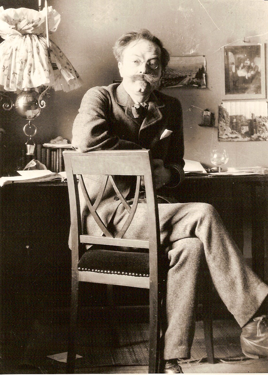 Year 1909. Alphons Diepenbrock (1862-1921). Photo by his friend Gijs Hondius van den Broek (1867-1913). In his study in House Diepenbrock.