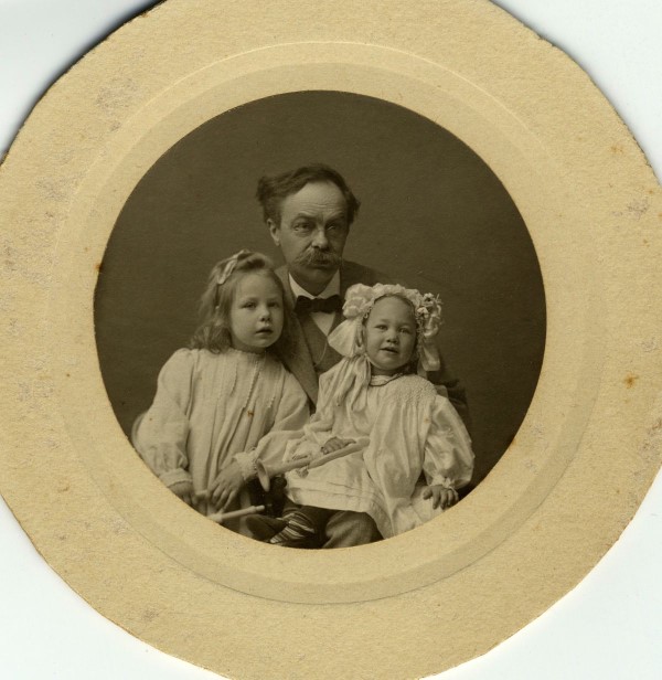 Year 1909. Alphons Diepenbrock (1862-1921) with Joanna and Thea.