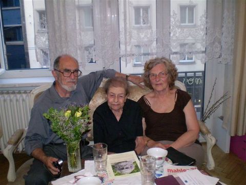 2010. Henry Mahler, Alma Ottilie Leonore Germany-Zsolnay (1930-2010) and Sheila Mahler. In Alma’s apartment in the Operngasse, Vienna.
