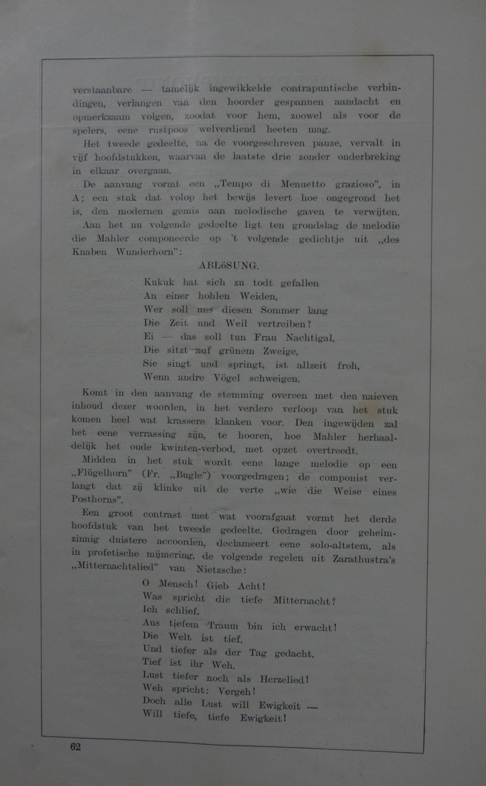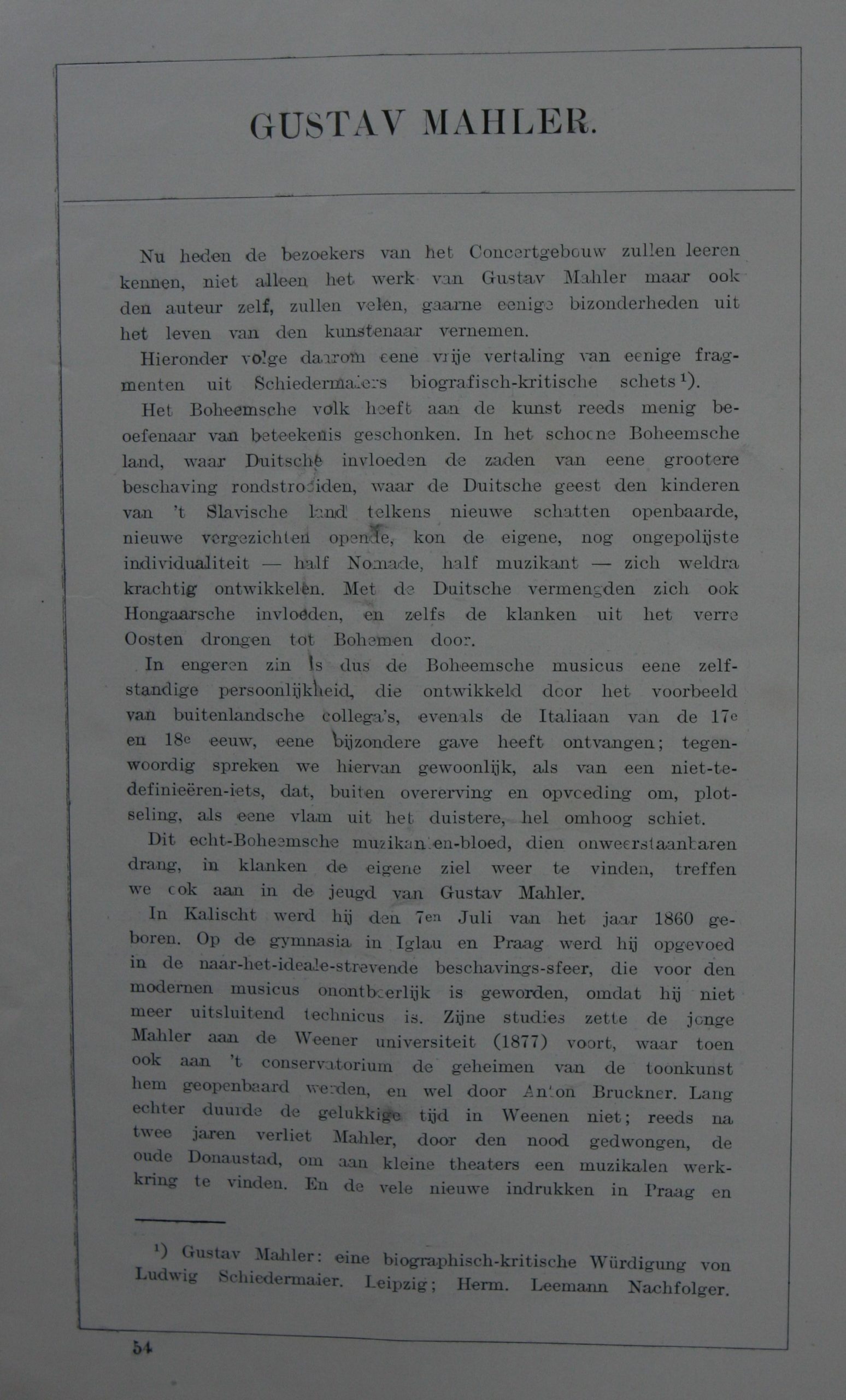- Notes: An intermission followed the 1st movement. First performance in Amsterdam. The originally announced soloist, Adrienne von Kraus-Osborne (1873-1951), was indisposed and was first replaced by Pauline de Haan-Manifarges. When she too fell ill Hermine Kittel (1879-1948) of the Vienna State Opera (Hofoper, Wiener Staatsoper) was engaged.