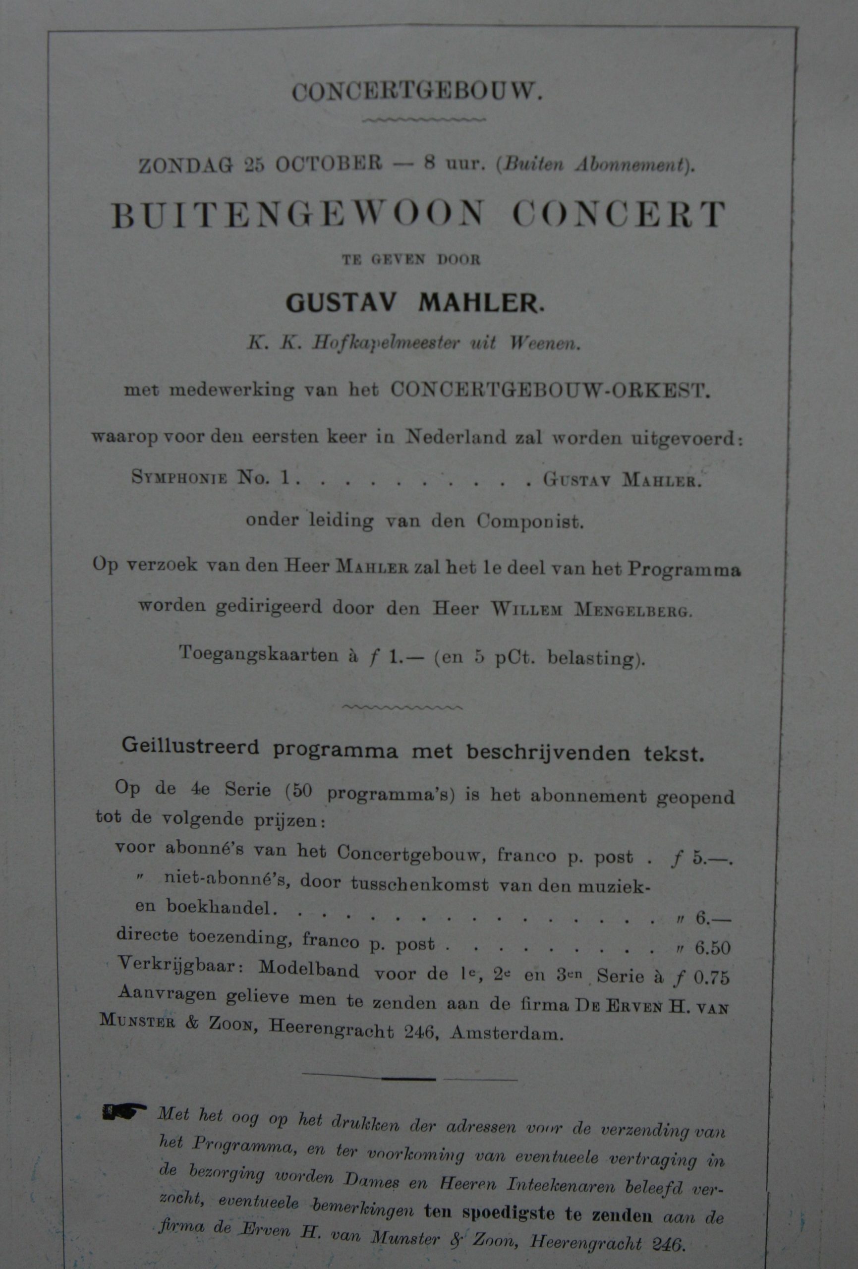 Amsterdam. Program. 1903 Concert Amsterdam 22-10-1903 – Symphony No. 3.