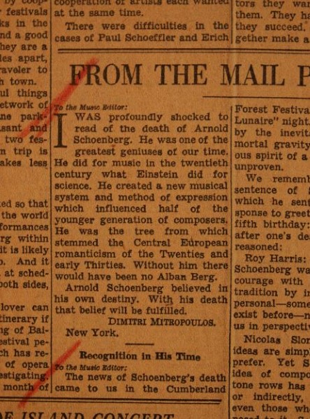 1951. Los Angeles. Arnold Schoenberg (1874-1951) obituary.