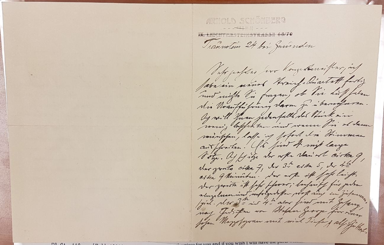 - 00-00-0000 Letter to Arnold Schoenberg (1874-1951). Undated.