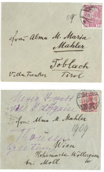 Year 1909. Letters from Gustav Mahler (1860-1911) to Frau Alma Mahler (1879-1964) in 1908-1910 Trenkerhof (Villa Trenker, Toblach, Tirol) and in 1909-1911 House Carl Moll II Vienna – Wollergasse No. 10 (Hohe Warte district, Vienna).