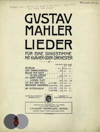 - 1907 Concert Berlin 14-02-1907 – Kindertotenlieder, Lieder eines fahrenden Gesellen, Des Knaben Wunderhorn, Ruckert-Lieder (piano)