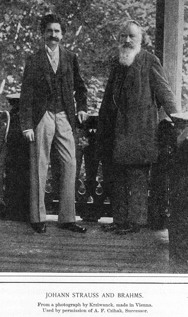 Brahms was a lifelong friend of Johann Strauss II, though they were very different as composers. Brahms even struggled to get to the Theater an der Wien in Vienna for the premiere of Strauss’s operetta Die Göttin der Vernunft in March 1897 before his death. Perhaps the greatest tribute that Brahms paid to Strauss was his remark that he would have given anything to have written The Blue Danube waltz. An old anecdote recounts that when Strauss’s wife Adele asked Brahms to autograph her fan, he wrote the first few notes of the “Blue Danube” waltz, and then wrote the words “Unfortunately not by Johannes Brahms!” underneath.