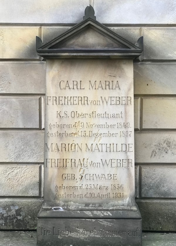 Grave Karl von Weber (1849-1897) and Marion von Weber-Schwabe (1856-1931), Old Catholic cemetery, Dresden. See also Familytree von Weber.