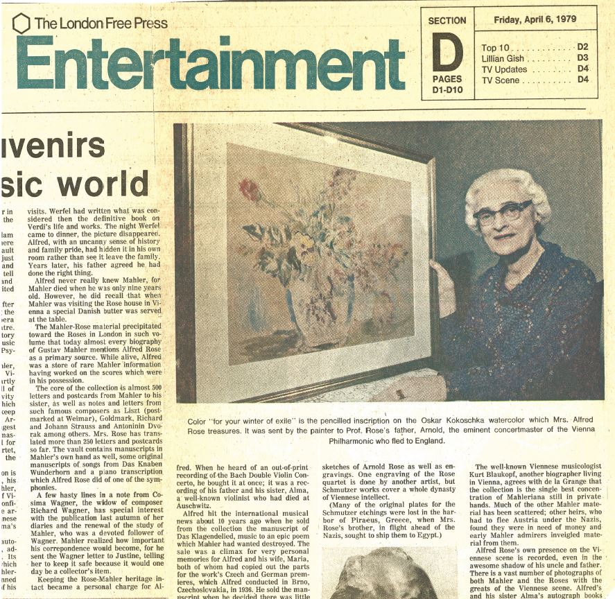 Alfred Eduard Rose (1902-1975). Relation to Gustav Mahler (1860-1911): A son of a sister (nephew).