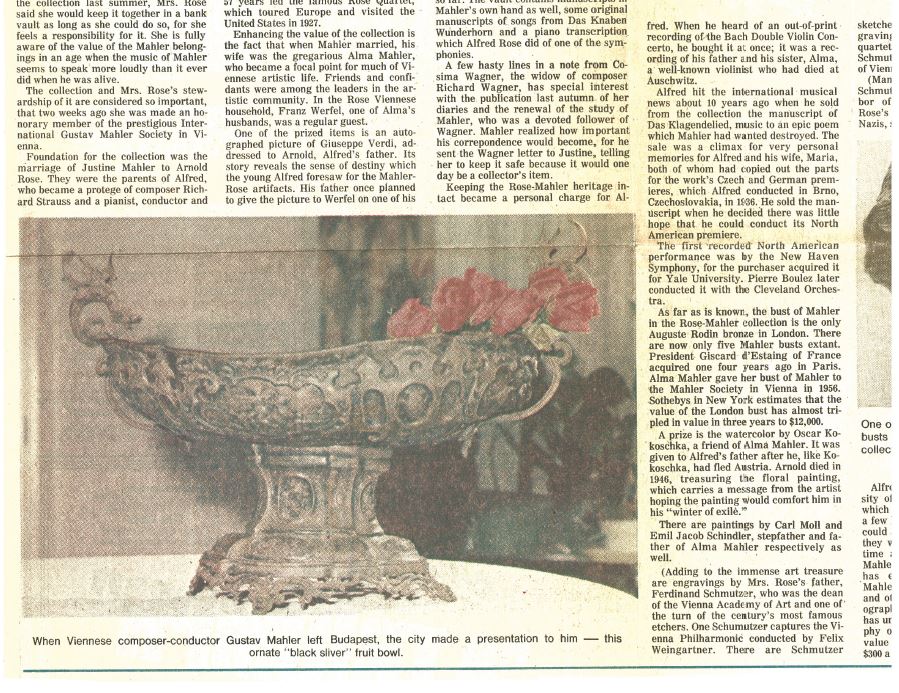 House Alfred Eduard Rose (1902-1975) and Maria Caroline Rosé-Schmutzer (1909-1999). 1979. House Alfred Eduard Rose (1902-1975) and Maria Caroline Rosé-Schmutzer (1909-1999). Silver Fruit Bowl Mahler got when he left the Budapest Hungary Opera, after having been their director for 3 years.