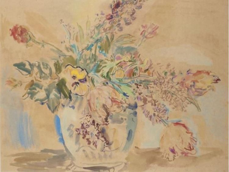 Oskar Kokoschka (1886-1980). Color "for your winter of exile' is pencilled on the watercolor which Maria Caroline Rosé-Schmutzer (1909-1999) treasures. It was sent by the painter to professor Alfred Eduard Rose (1902-1975)'s father, Arnold Josef Rose (1863-1946), the eminent concertmaster of the Vienna Philharmonic Orchestra (VPO) who fled to England.