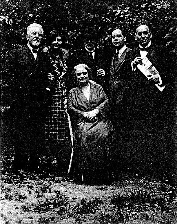 Standing: Arnold Josef Rose (1863-1946), Alma Maria Rose (1906-1944), Felix von Weingartner (1863-1942), Alfred Eduard Rose (1902-1975) and Ludwig Karpath (1866-1936). Seated: Justine (Ernestine) Rose-Mahler (1868-1938).