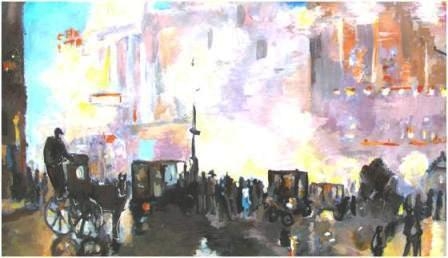 London. Theatre Royal Drury Lane. Drury Lane at the time of Mahler’s visit- the streets were busy with pedestrians and horse drawn carriages.