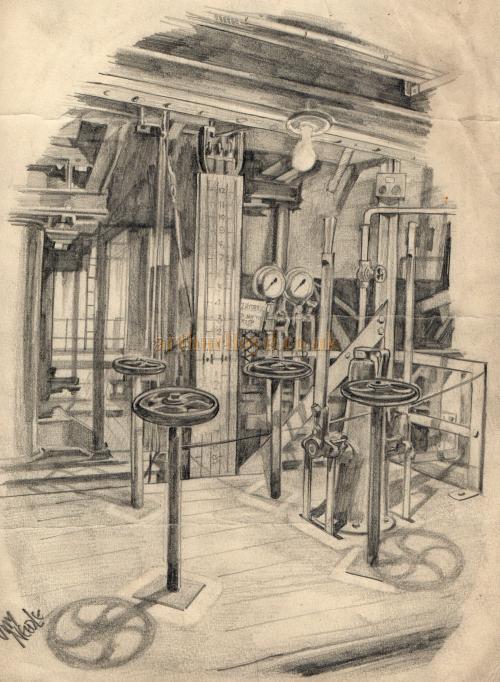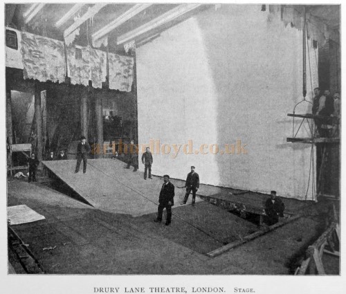 1890s. London. Theatre Royal Drury Lane. The Drury Lane lifts in action in the late 1890s. Part of the stage lifting equipment, still working today, was used during Gustav Mahler’s productions.