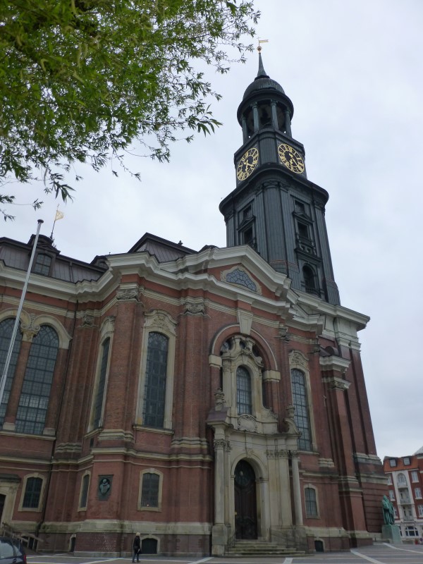 St. Michael’s Church or Hauptkirche Sankt Michaelis is one of Hamburg’s five Lutheran main churches (Hauptkirchen) and the most famous church in the city. St. Michaelis is a landmark of the city and it is considered to be one of the finest Hanseatic Protestant baroque churches. The church was purposely built Protestant unlike many other Hamburg churches which were originally built by Roman Catholics and were converted to Protestantism during the Reformation. It is dedicated to the Archangel Michael. A large bronze statue, standing above the portal of the church shows the archangel conquering the devil. The 132-meter high Baroque spire totally covered with copper is a prominent feature of Hamburg’s skyline and has always been a landfall mark for ships sailing up the river Elbe.