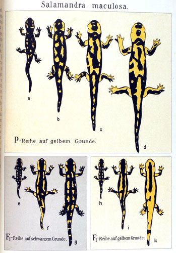 Almost all of Kammerer’s experiments involved forcing various amphibians to breed in environments that were radically different from their native habitat. Kammerer experimented with the cave-dwelling newt Proteus. Proteus is totally blind and only has rudimentary eyes that are buried deep beneath the skin. He found that exposing the blind newts to ordinary light only produced a black pigment over the eye and sight never developed. Yet, when Proteus was raised under red light, Kammerer was able to produce specimens with large, perfectly developed eyes.