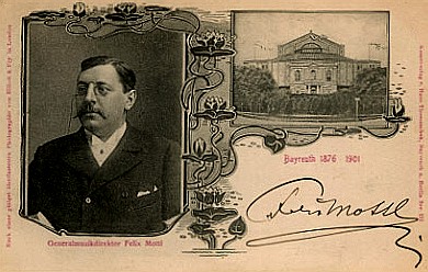 Felix Mottl studied with Anton Bruckner. He assisted Richard Wagner at the first Festspiele in Bayreuth in 1876, where he directed Wagner’s “Ring des Nibelungen”. His best known opera “Agnes Bernauer” was first performed in 1880 in Weimar.