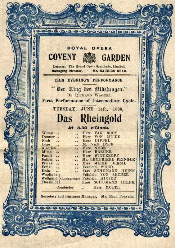 Programme of the performance at Covent Garden in London, 14-06-1898.